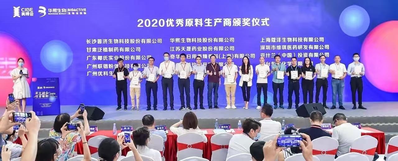 公司在2020年秋季美博会被评为“2020年优秀原料生产商”
